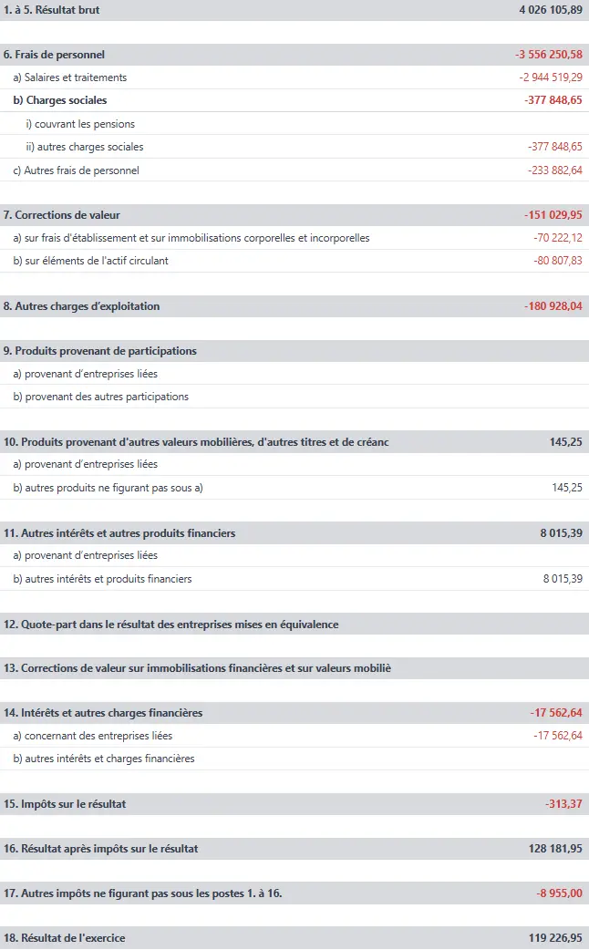 Compte de résultats :
